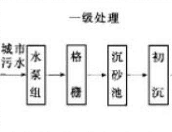 廢水的一級處理,主要去除廢水中呈懸浮狀態(tài)的固體污染物質(zhì),物理處理法大部分只能完成一級處理的要求。經(jīng)過一級處理的廢水,BOD一般可去除30%左右,達(dá)不到排放標(biāo)準(zhǔn)。一級處理屬于二級處理的預(yù)處理。廢水的以及處理流程圖如下: