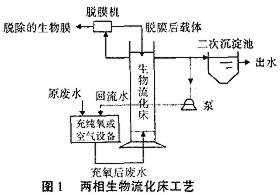 生物流化床技術(shù)是一種新型的生物膜法工藝,是繼流化床技術(shù)在化工領(lǐng)域廣泛應(yīng)用后于20世紀(jì)70年代初發(fā)展起來的。其載體在流化床內(nèi)呈流化狀態(tài),使固(生物膜)、液(廢水)、氣(空氣)3相之間得到充分接觸,顆粒之間劇烈碰撞,生物膜表面不斷更新,微生物始終處于生長旺盛階段。該技術(shù)使生化池各處理段中保持高濃度的生物量,傳質(zhì)效率極高,從而使廢水的基質(zhì)降解速度快,水力停留時間短,運(yùn)轉(zhuǎn)負(fù)荷比一般活性污泥法高5~10倍,耐沖擊負(fù)荷能力強(qiáng)。按其生物膜特性等因素可分為好氧生物流化床和厭氧生物流化床兩大類。